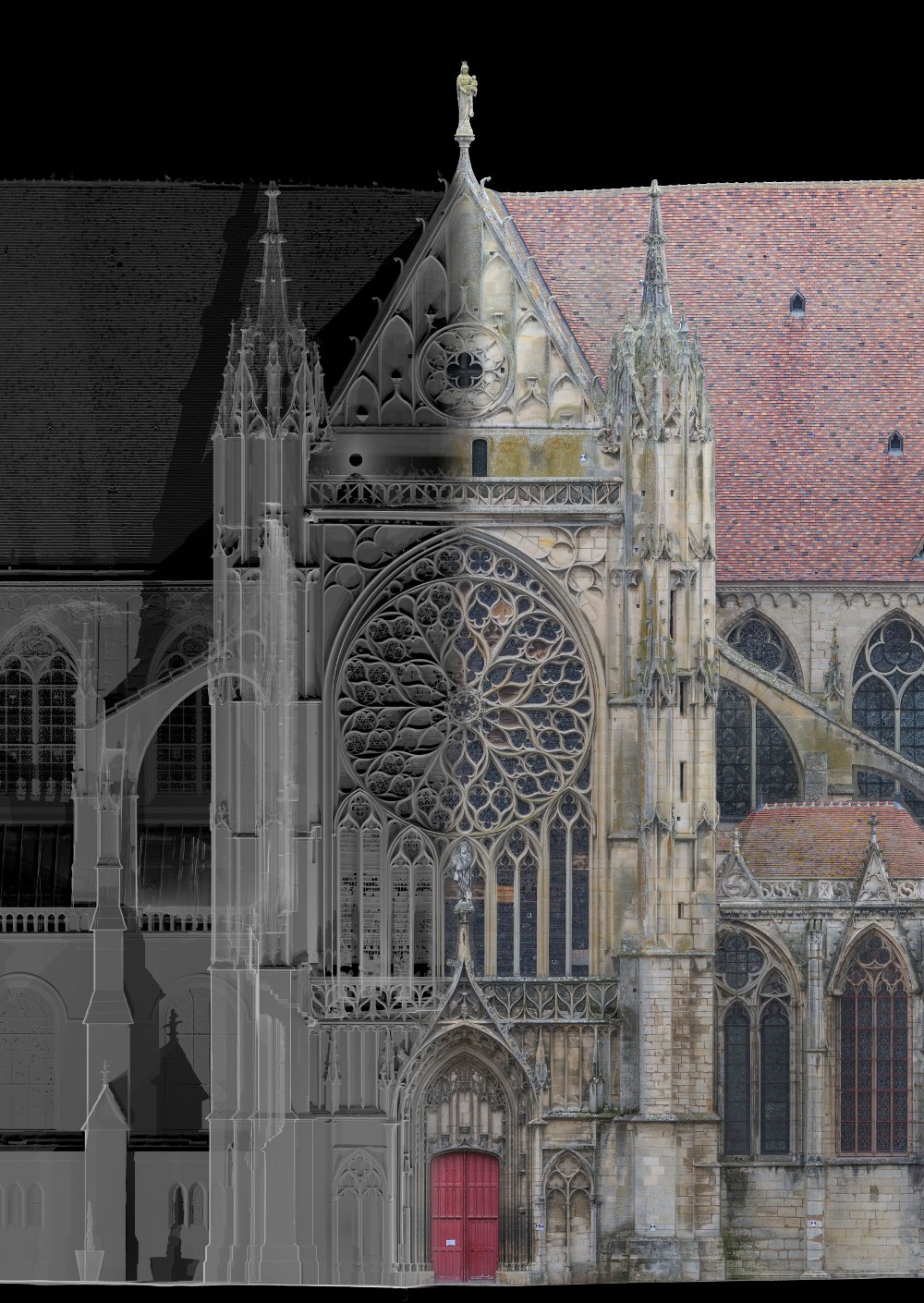 TPLM-3D est intervenue dans le cadre de l’étude des structures du bâti et des vitraux de la cathédrale Saint Étienne de Sens. En effet, La mission de réaliser des relevés par lasergrammétrie et photogrammétrie nous a été confiée. Le but étant de produire des orthophotographies et orthoimages des murs intérieurs et extérieurs du transept de la cathédrale.